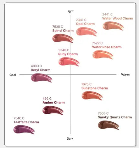 We show swatches on fair/medium/deep skin and note that GlowLoop™ is sheer + buildable, so your natural lip tone will peek through. For a closer match, apply two coats or choose deeper shades (C7–C10).