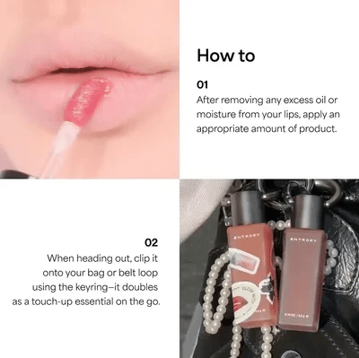 It’s a gel-gloss tint + key-ring design. You get glassy shine without stickiness, a sheer-to-bold tint that lingers after the shine fades, and a clip-on cap so it’s always with you.